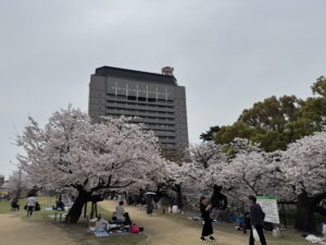 大分市の府内城跡周辺では花見で賑わってましたよ。